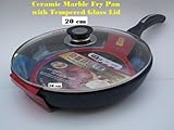 Tempered Glass Lid.Made in Korea...leader in new ceramic non stick technology.Marble coating both inside and outside, 10x stronger than teflon coating.Ceramic Marble Coated Fry Pan with Lid.Premium Quality Cast Aluminium with 4 layers of Non-Stick Marble Coating. This is the "green" frypan. Made of premium quality cast aluminium and coated with 4 layers of coating, top with ceramic marble on both inside and outside, this frypan is absolutely remarkable. Nothing will ever stick to it. Most of the time, all you need is a paper towel to wipe off any residue before you can reuse again. Unlike other non-stick cookware coated with teflon, this ceramic marble coating is safe and 10x stronger than teflon coating. It will withstand temperature up to 800 degrees Farenheit and yet have the heat distributed evenly to avoid burn spots. PTFE and PFOA free, this pan is not only good for you but is also environmentaly safe.Perfect Gift for Christmas, Mothers' Day, Fathers' Day, Weddings, Hose Warming, Birthdays and just about any occassion.